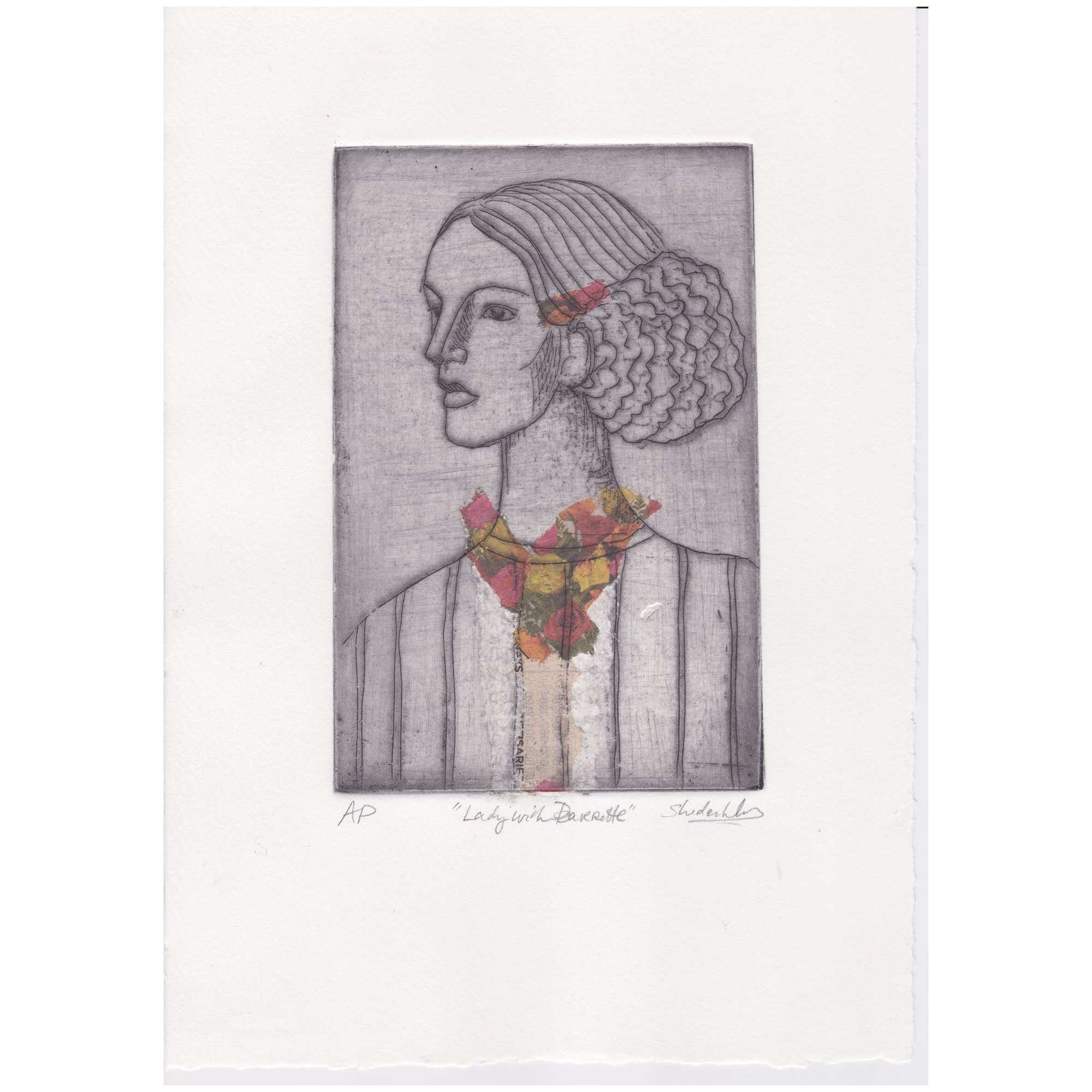 Drypoint and Soft Ground Etching on Fabriano archival paper with chine collé paper.